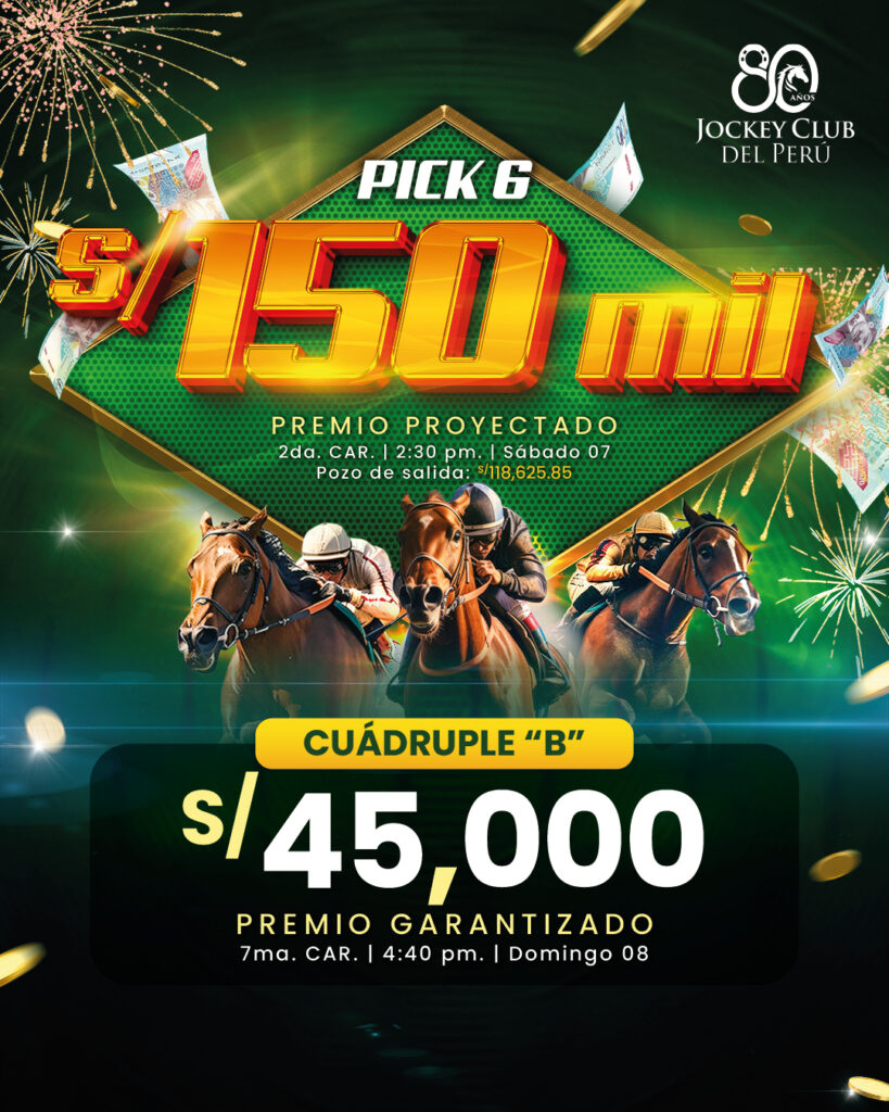 | 2 | PICK 6 | S/ 150,000 PREMIO PROYECTADO AL UNICO BOLETO GANADOR CON 6 ACIERTOS |